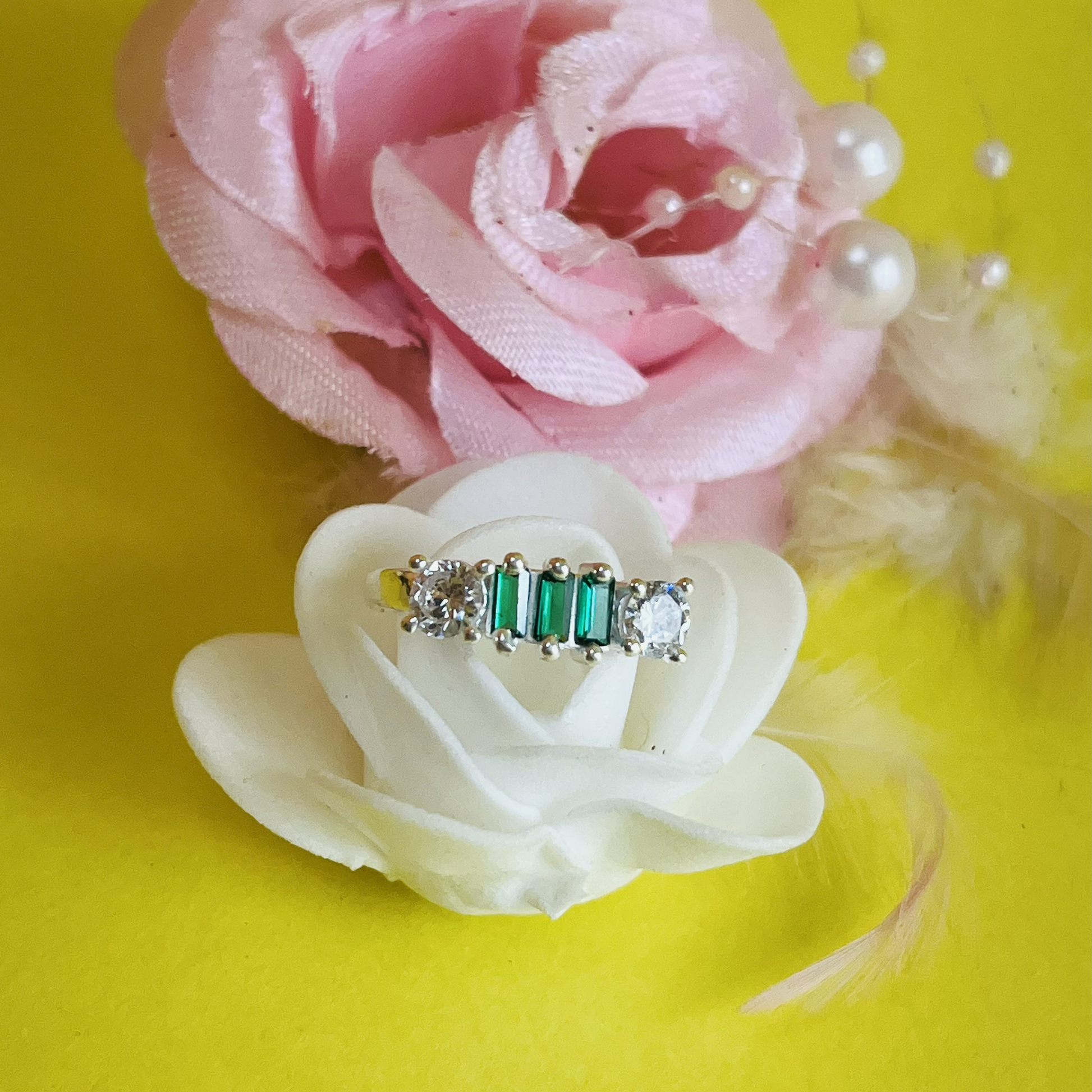 Elegant Silver Ring with Emerald Green and American Diamond Stones