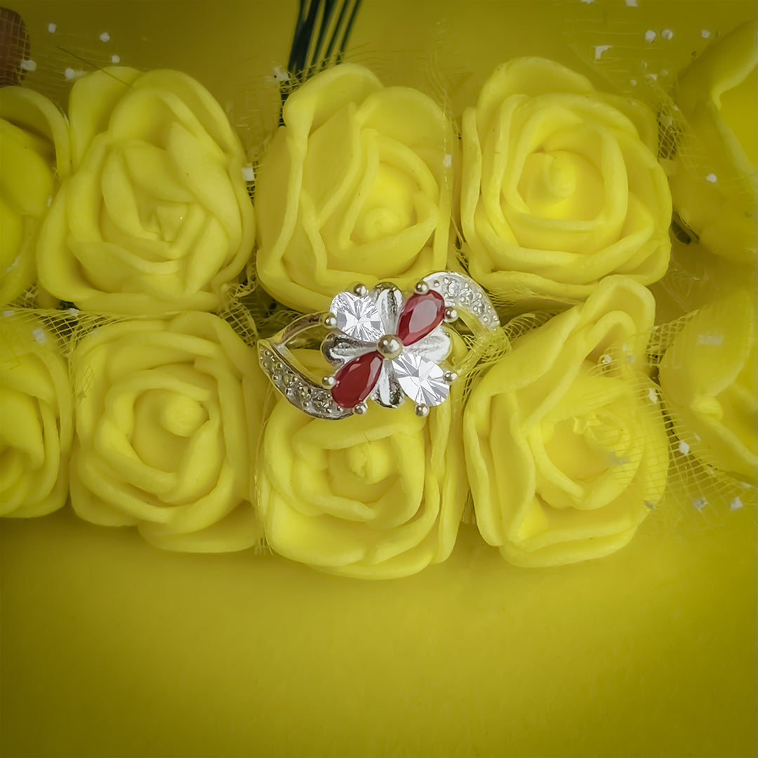 Expertly crafted from premium-quality silver, this ring’s floral motif symbolizes beauty and charm. The contrast of radiant red petals and shimmering white stones brings out an eye-catching sparkle, ideal for daily wear, festive occasions, or as a thoughtful gift for someone special.